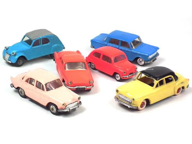 comprend : SIMCA ARONDE P60, FIAT 600, 1500, RENAULT GRAND PAVOIS, FLORIDE & CITROEN 2CV - petites déformations des carrosseries avec jantes légèrement fondues