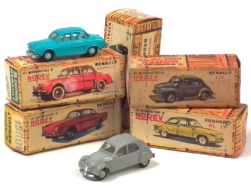 série 'MICROMINIATURES' - comprend : CITROEN 2CV, RENAULT DAUPHINE, 4CV, FLORIDE (toit fendu) & PANHARD PL17 - quelques boîtes en état 'd' dont quelques unes non conformes à la couleur du modèle