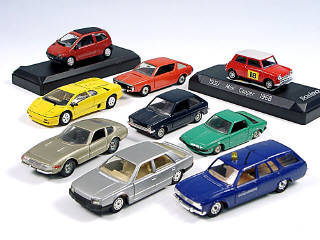 miniatures reproduisant les marques : PEUGEOT, RENAULT, FERRARI, LANBORGHINI, AUSTIN, FORD & FIAT - un modèle en état 'B' avec jantes fondues & petits détails de peinture ajoutés