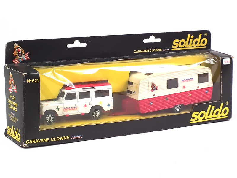 SOLIDO (FRANCE) 621 LAND ROVER avec caravane 'CIRQUE AMAR' blanc & rouge