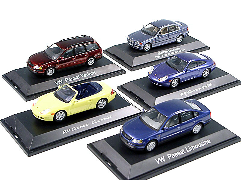miniatures reproduisant les marques : PORSCHE, VOLKSWAGEN & BMW - avec 3 suremballages en carton