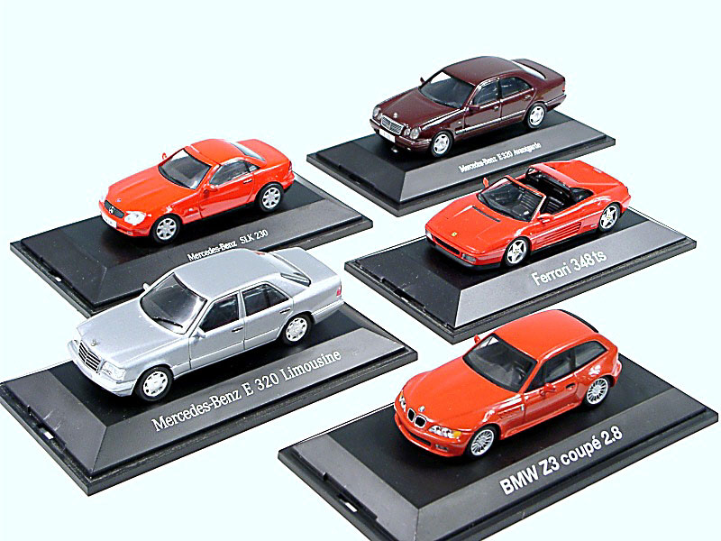 miniatures reproduisant les marques : BMW, FERRARI & MERCEDES - avec un suremballage en carton