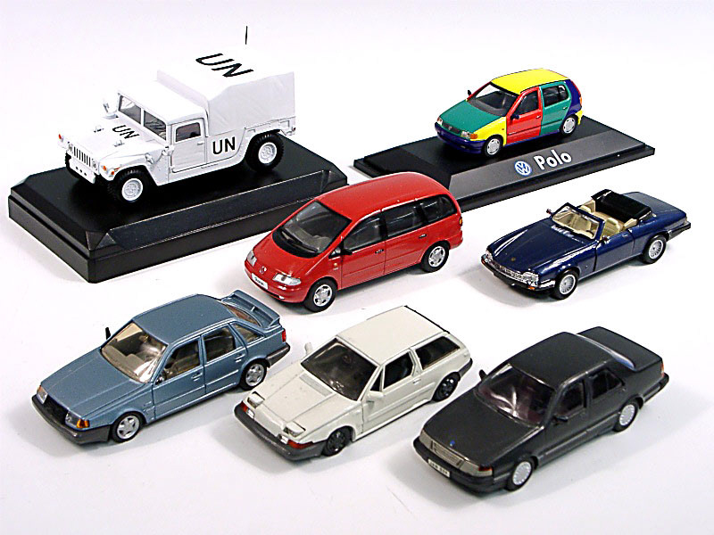 miniatures reproduisant les marques : HUMMER, JAGUAR, VOLVO & VOLKSWAGEN - on y retrouve les marques : HERPA, AHC MODELS & DETAILCARS - 3 modèles avec boîte