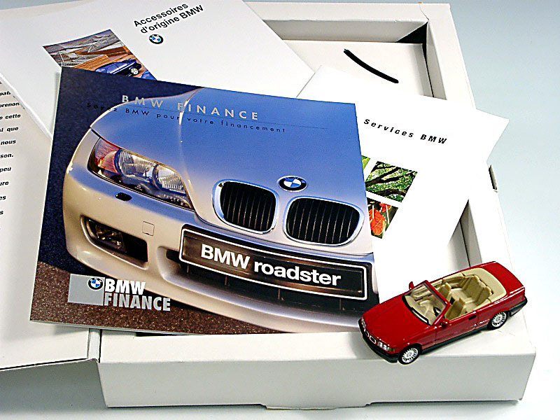 contient : une documentation sur la gamme BMW 1996/97, une brochure de financement, un livret sur les services BMW & une BMW cabriolet de marque SOLIDO - ce coffret était remis lors d'une commande d'une BMW