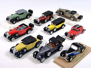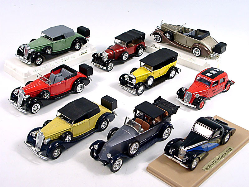 miniatures reproduisant les marques : PACKARD, RENAULT, MERCEDES, FIAT, CITROËN & BUGATTI - 3 modèles avec boîte