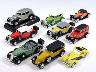 miniatures reproduisant les marques : PACKARD, RENAULT, CADILLAC, FORD, CORD & BUGATTI - un modèle avec boîte