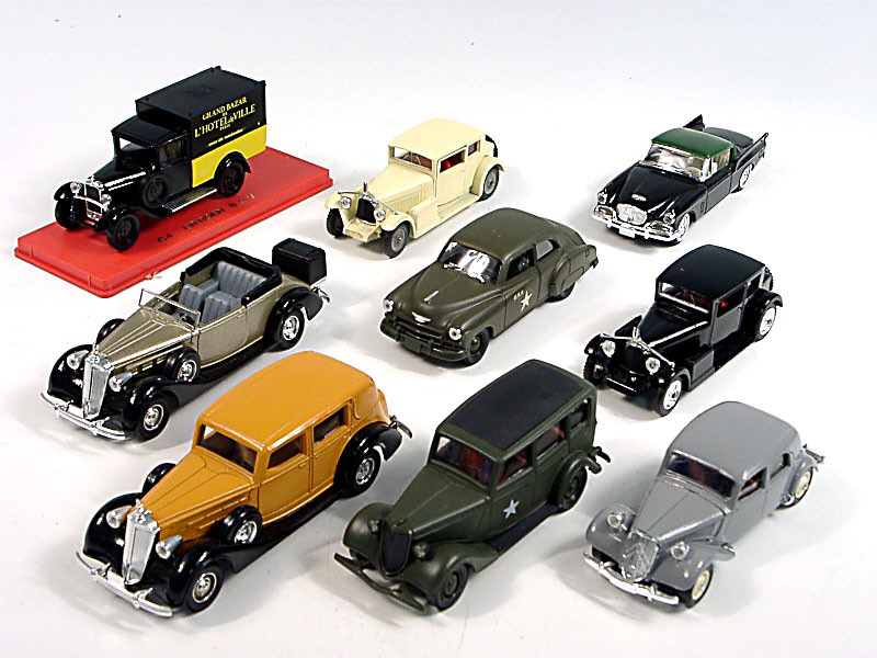 miniatures reproduisant les marques : PACKARD, VOISIN, CITROËN, CHEVROLET, STUDEBAKER & FORD - un modèle avec boîte