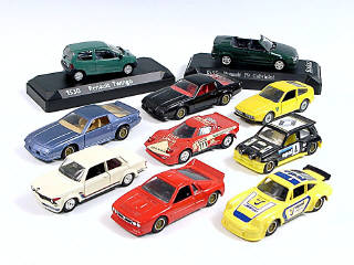 modèles reproduisant les marques : RENAULT, LANCIA, BMW, PORSCHE, CHEVROLET & ALFA ROMEO - 2 modèles avec boîte - petits détails de peinture ajoutés sur un modèle