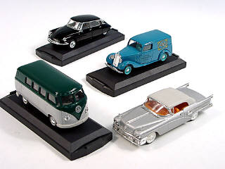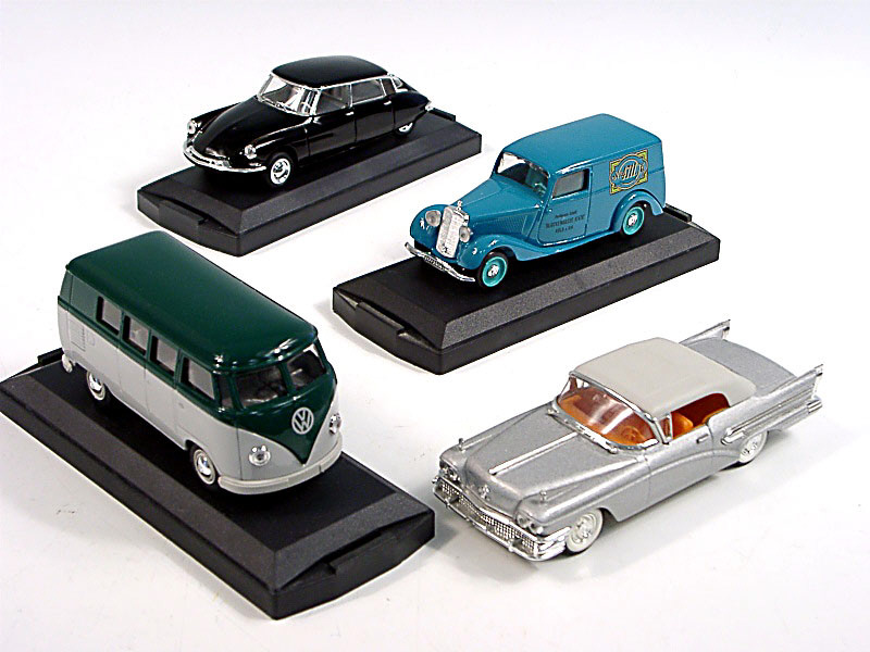 modèles reproduisant les marques : VOLKSWAGEN, CITROËN, BUICK & MERCEDES - 3 modèles avec boîte - plancher légèrement déformé sur un modèle