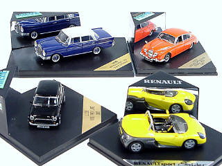 modèles reproduisant les marques : MERCEDES, RENAULT, JAGUAR & AUSTIN - une boîte en état 'C'
