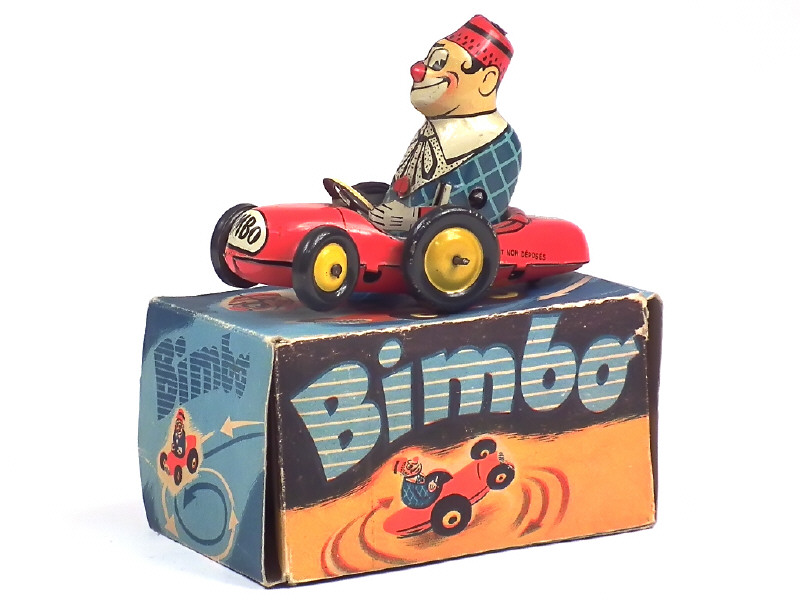JOUSTRA (FRANCE) 1007 BIMBO en voiture en tôle lithographiée rouge, bleu & jaune