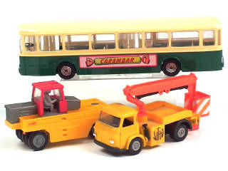 comprend : SAVIEM SM 5C élévateur 'SIFEV', SC10U autobus 'CARAMBAR' (partie supérieure de la carrosserie légèrement jaunie - système d'ouverture des portes légèrement bloqué) & RICHIER C785 compacteur - 2 carrosseries légèrement encrassées