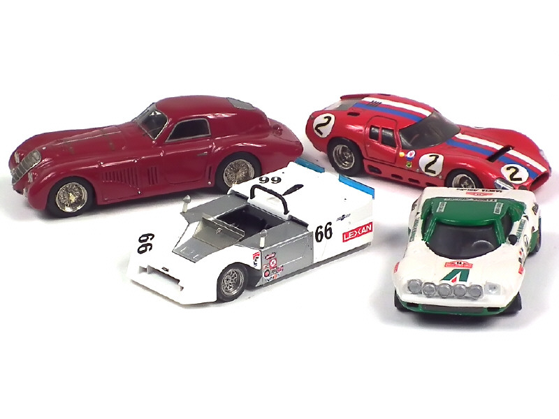 comprend : LANCIA STRATOS, CHAPARRAL 2J, MASERATI 151-3 & ALFA ROMEO 8C 2900B (sortie d'échappement à recoller) - on y retrouve notamment les marques : BBR, ESDO & CONTI MODELS - quelques petits éléments cassés & manquants