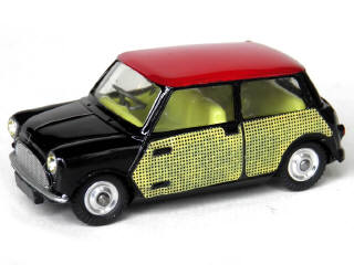 CORGI TOYS (GB) 249 MORRIS MINI COOPER noir, toit rouge, flancs canés