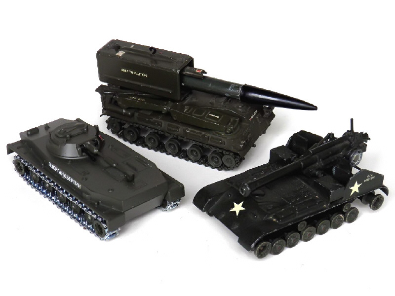 états de 'A' à 'C' - miniatures reproduisant les modèles : canon de 155 mm automoteur (manque chenilles), char PT 76 & char AMX 30 PLUTON