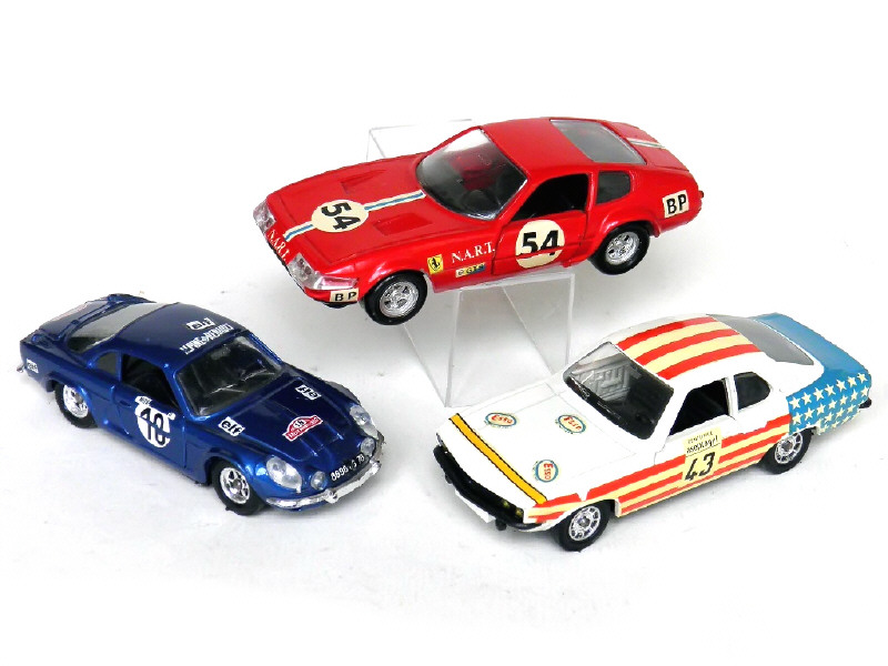 états de 'A' à 'B' - miniatures reproduisant les modèles : ALPINE, FERRARI & OPEL - petits manques sur les décalques