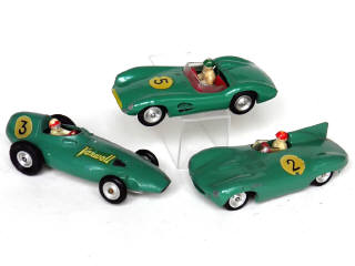 états de 'B' à 'C' - miniatures reproduisant les modèles : ASTON MARTIN, JAGUAR & VANWALL (2 pneus non d'origine) - légers manques sur les décalques
