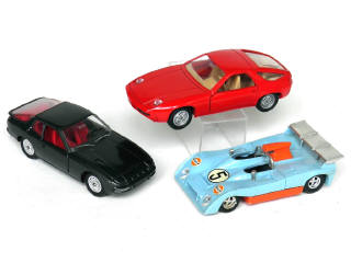 miniatures reproduisant les modèles : PORSCHE 924, PORSCHE 928 & GULF MIRAGE (état 'B')