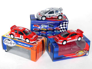 échelle 1/60ème - série MINI JET - miniatures reproduisant les modèles : 206 WRC (2 exemplaires, une boîte 'b') & 307 WRC