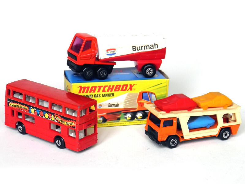états de 'A' à 'C' - comprend : (MB11) BEDFORD porte autos, (MB17) autobus 2 étages 'SWINGING LONDON' & (MB63) camion avec remorque citerne 'BURMAH' (avec boîte état 'a') - série 1-75