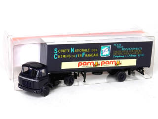 ROSKOPF 'HO' (ALLEMAGNE) 735 BERLIET GAK avec semi fourgon 'SNCF, PAM PAM' bleu marine