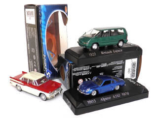 miniatures reproduisant les modèles : SIMCA CHAMBORD (boîte non conforme), ALPINE A110 & RENAULT ESPACE