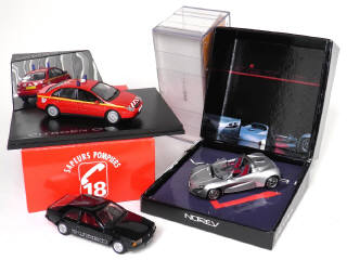 miniatures reproduisant les modèles : CITROEN C5 pompiers (manque une antenne), VENTURI FETISH (coffret état 'c') & RENAULT FUEGO Turbo
