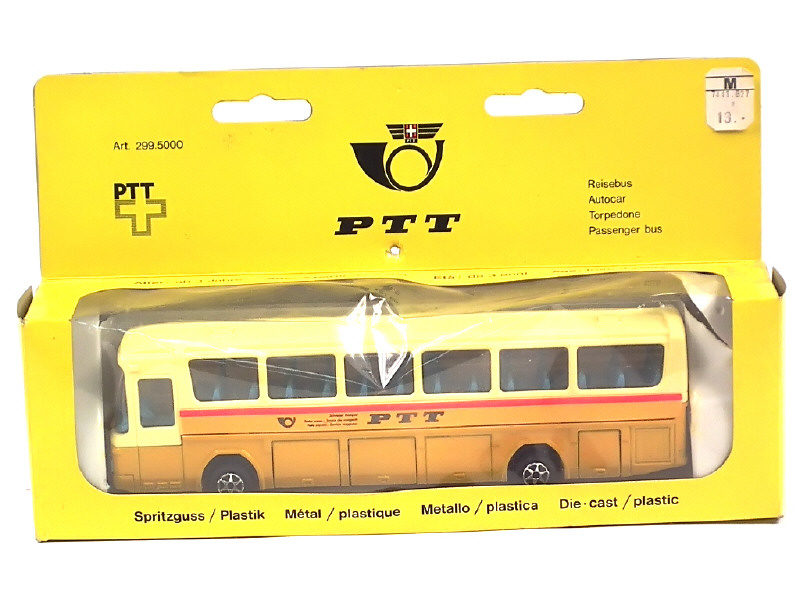 MAJORETTE (FRANCE) 299.5000 MERCEDES Autocar 'PTT SUISSE' orange & crème