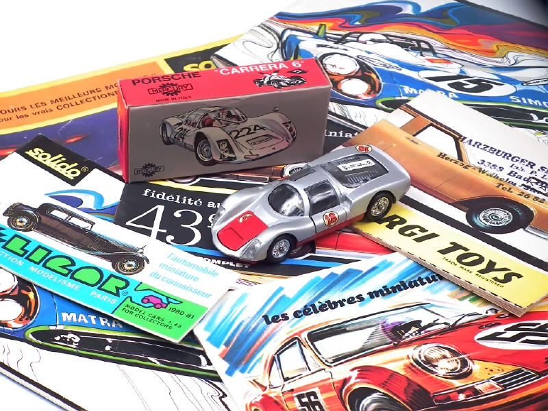 n°18 - 2 décalques ajoutés & un autre incomplet - on y joint 7 catalogues (en état 'b') de la marque SOLIDO (5 exemplaires dont 2 en état 'c'), ELIGOR & CORGI TOYS