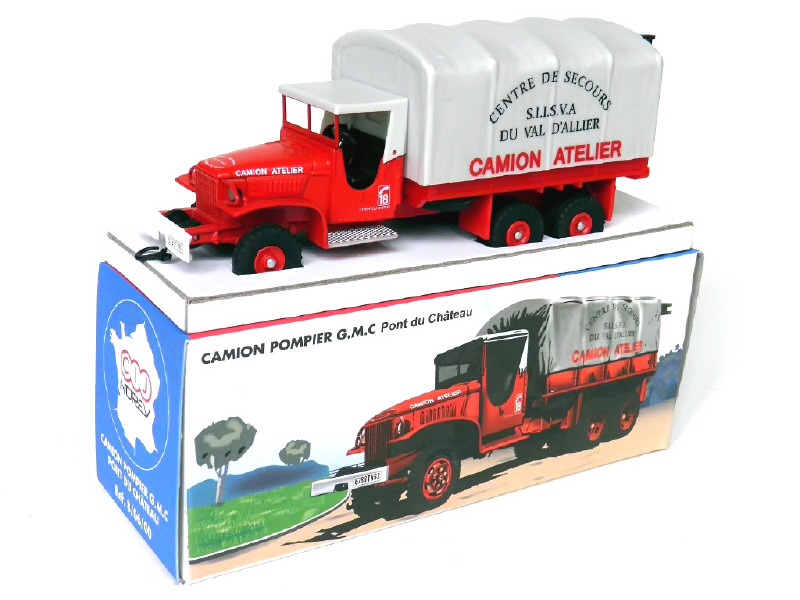C.I.J./NOREV (FRANCE) 8/06/00 GMC Bâché dépannage 'CENTRE DE SECOURS DU VAL D'ALLIER, CAMION ATELIER' rouge, bâche gris pâle