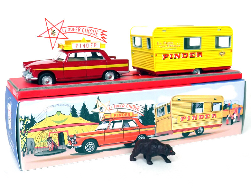 C.I.J./NOREV (FRANCE) 8/00/00 PEUGEOT 404 avec caravane 'PINDER' rouge & jaune