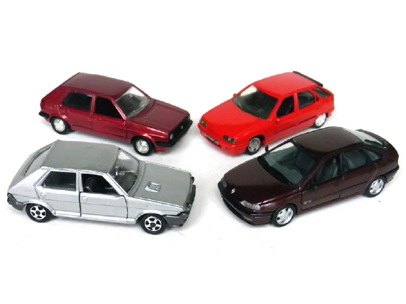 miniatures reproduisant les modèles : CITROEN ZX, FIAT RITMO, VOLKSWAGEN GOLF & RENAULT LAGUNA - on y retrouve les marques : SOLIDO, MATTEL, SCHABAK & VITESSE