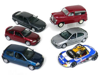 miniatures reproduisant les modèles : SAFRANE, MEGANE, MEGANE coupé, CLIO, SPORT spider & COLORALE SAVANE