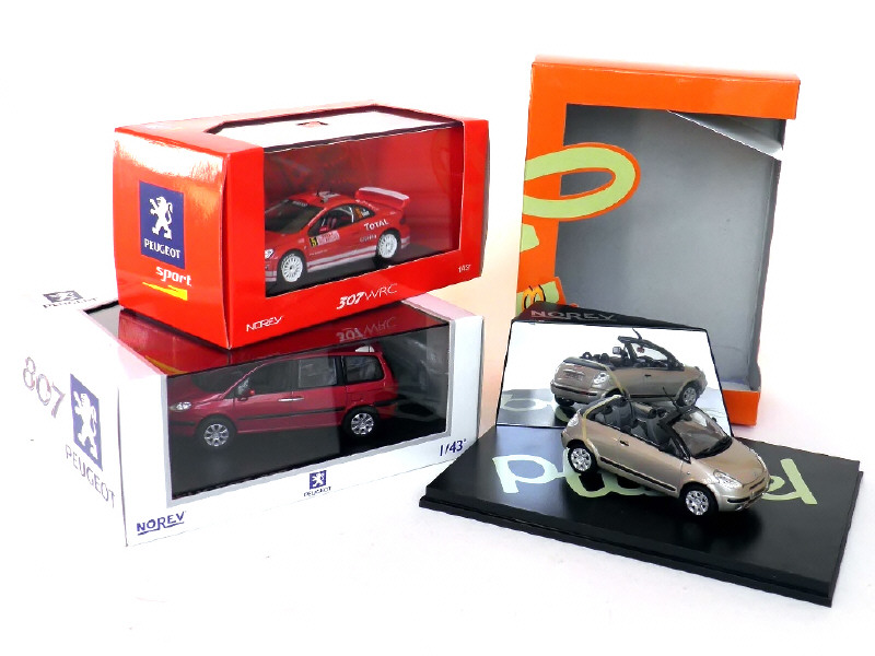 miniatures reproduisant les modèles : CITROEN C3 PLURIEL, PEUGEOT 807 & PEUGEOT 307 WRC Monte Carlo 2004