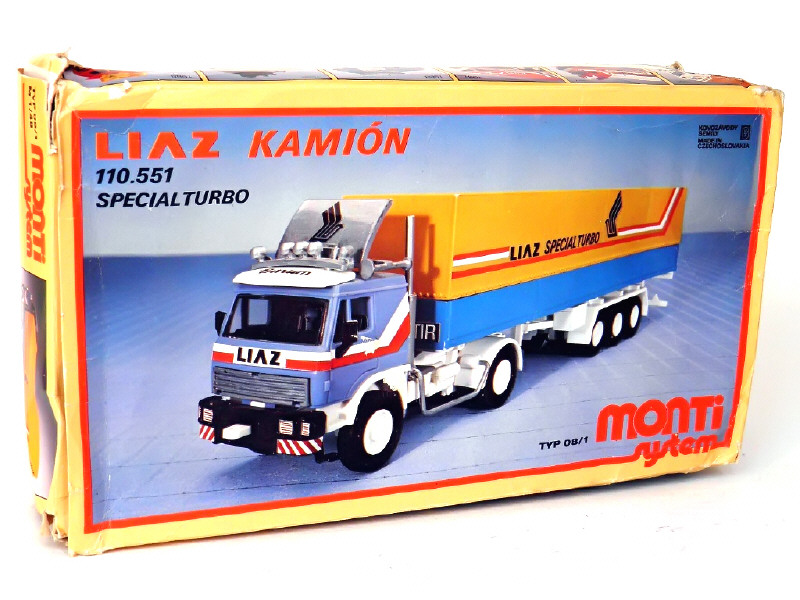 KOVOZAVODY SEMILY (TCHECOSLOVAQUIE) 08/1 LIAZ 110.551 avec semi bâchée 'LIAZ SPECIAL TURBO' bleu & blanc, bâche jaune