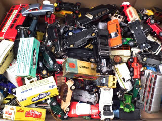 états de 'B' à 'R' - comprend plus ou moins 80 modèles - on y retrouve notamment les marques : SOLIDO, CORGI TOYS, DINKY TOYS, ELIGOR, SCHUCO & SIKU - manques & parties cassées - quelques modèles en boîtes