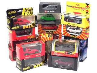 comprend : ALFA ROMEO (4 modèles différents), ASTON MARTIN, CITROEN (2 modèles différents), E.R.A., MASERATI, PEUGEOT(2 modèles différents), PORSCHE (2 modèles différents), RENAULT (2 modèles différents),& VOLKSWAGEN (2 modèles différents) VAUXHALL - on y retrouve les marques : BBURAGO, MAISTO, MINICHAMPS, MATCHBOX, SOLIDO, SCHUCO & VEREM - 2 boîte en états 'c'