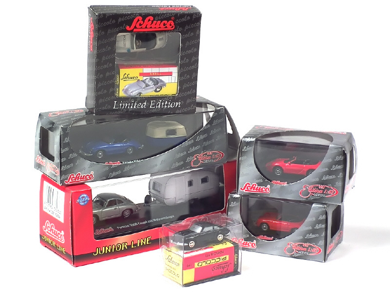 SCHUCO (ALLEMAGNE) Ensemble de 6 PORSCHE & 2 caravanes