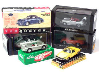 comprend les modèles : 356 (3 exemplaires différents), 550, 911 & 914 - on y retrouve les marques : DINKY TOYS (GB), ELIGOR, MINICHAMPS (dont une série limitée à 1344 exemplaires), SOLIDO & VANGUARD (série limitée numérotée 3433/5000 exemplaires)
