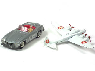 envergure 14 cm - une hélice & sa fixation manquante - décalques avec croix blanches sur rond rouge - fabrication de 1946-1960