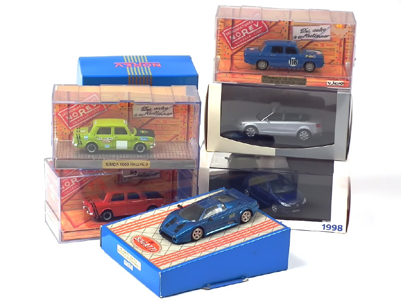 comprend les modèles : SIMCA 1000 rallye, PEUGEOT 206 XT, AUDI A4 cabriolet, RENAULT 8 GORDINI & BUGATTI EB110 (modèle de développement 1991 - avec fiche technique du modèle)