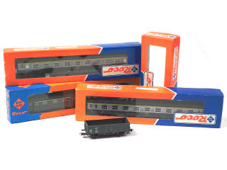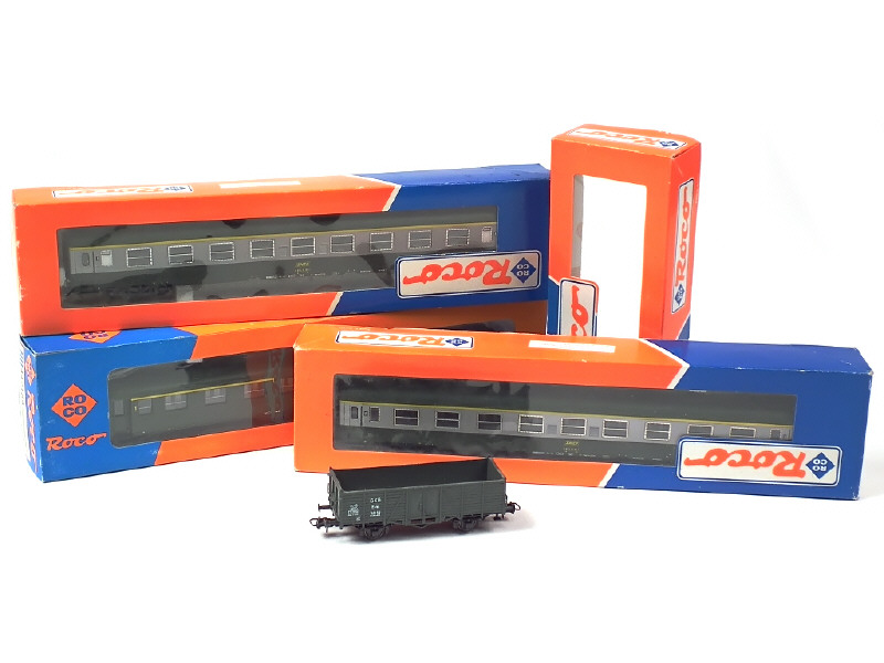 ROCO 'HO' (AUTRICHE) Ensemble de 3 wagons de voyageurs & un wagon de marchandises