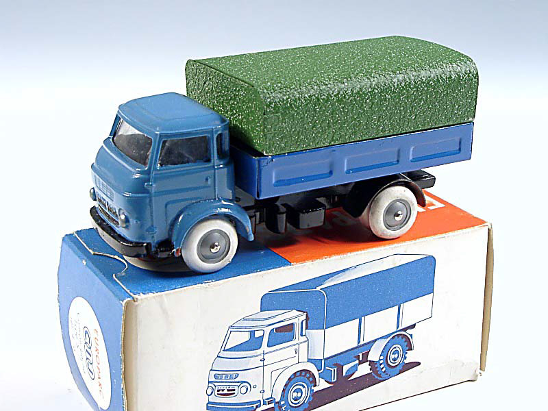 C.I.J. (FRANCE) 4/76 SAVIEM S7 Plateau à ridelles bâché bleu, bâche vert turquoise