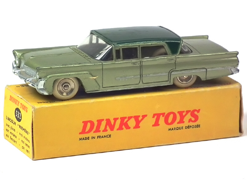 DINKY TOYS (FRANCE) 532 LINCOLN PREMIERE (version avec jantes concaves) vert métal, toit vert foncé