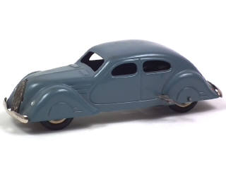 longueur 17,5 cm - moteur à ressort (fonctionne) - avec direction - calandre ternie - légères rayures & petits éclats par endroits