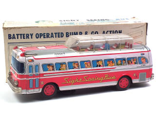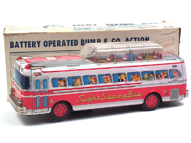 BANDAÏ (JAPON) 4133 Autobus panoramique 'SIGHT SEEING' en tôle lithographiée rouge & blanc