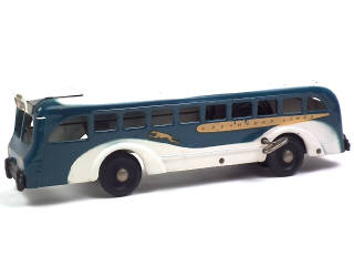 BUDDY L (USA) Autocar 'GREYHOUND LINES' en tôle peinte bleu & blanc