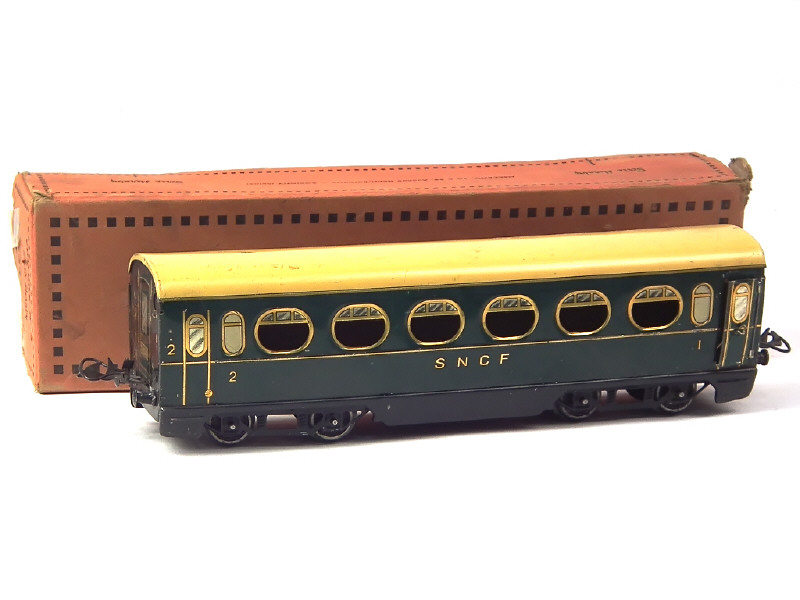 HORNBY 'O' (FRANCE) Voiture-voyageurs 2ème classe 'SNCF' jaune & crème