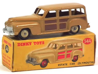 DINKY TOYS (GB) 344 PLYMOUTH Break 'Woody' 2 tons de marron, jantes beiges