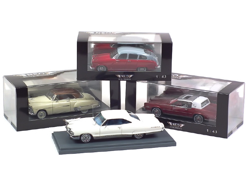 comprend : BORGWARD H 2400, PONTIAC BONNEVILLE HT coupé, CADILLAC ELDORADO BIARRITZ & CHEVROLET DE LUXE HT coupé